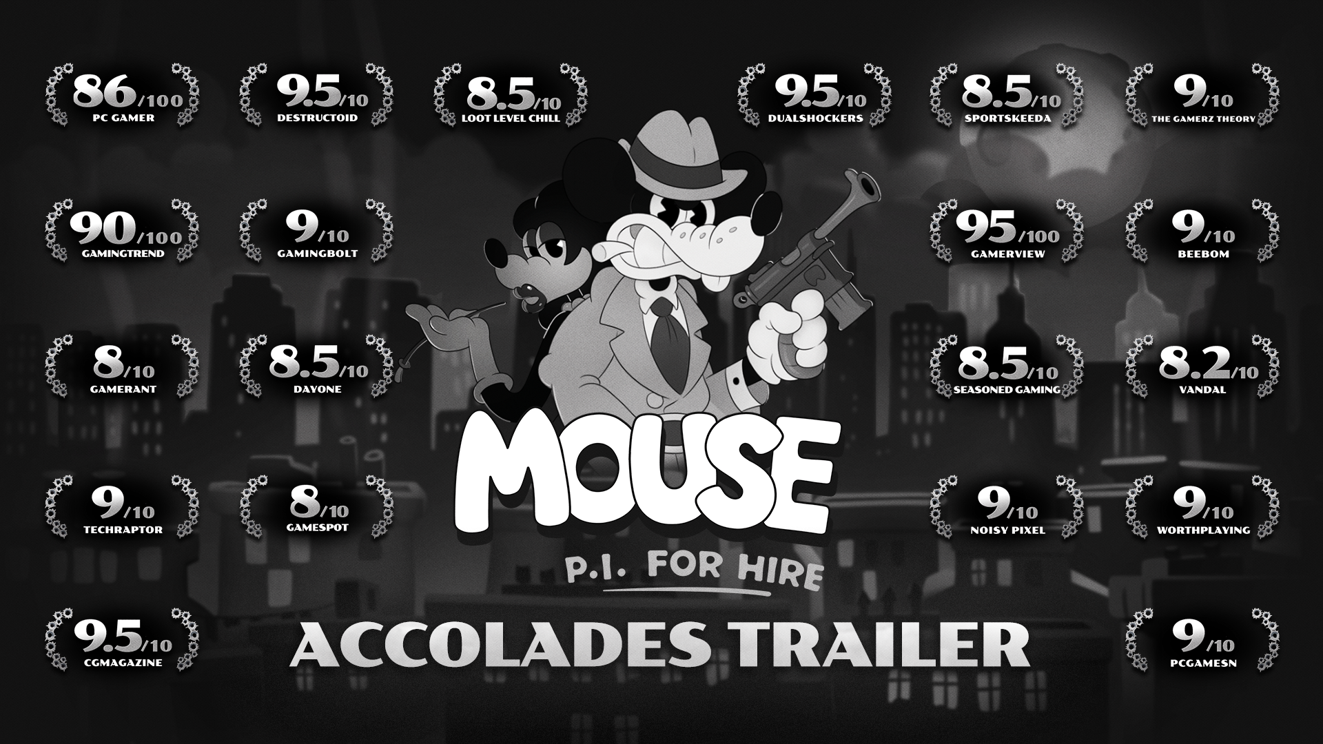 Detectives,Today we celebrate the successful launch of MOUSE: P.I. For Hire with an action-packed Accolades Trailer. This brand new trailer showcases just a handful of the critic reviews for the game, all of which praise the title for its gameplay, art direction, music, design, and everything in between.With both Metacritic and OpenCritic scores of 81, MOUSE: P.I. For Hire has been burning up the review charts as one of the highest-rated titles this year. GameSpot stated that it is “an endlessly charming game that I found a joy to simply behold”, GameRant expressed that the game “absolutely oozes charm in its narrative and gameplay”, and both PC Gamer and Kotaku claim that the game is one of the best shooters they have played in many years.MOUSE: P.I. For Hire has also been a hit with you across the board, with player ratings of 95% overwhelmingly positive on Steam, 8.3 out of 10 on Metacritic, 4.88 out of 5 stars on PlayStation, and 4.8 out of 5 stars on Xbox. This critical reception has helped the game surge up the sales charts, reaching #2 on Steam global sales charts and #2 on Nintendo Switch 2 eShop charts. We could not be happier with the results but will not slow down, having already shifted focus to supporting the title with Hotfixes and Patches to address your feedback.Mouseburg is now open for investigation with MOUSE: P.I. For Hire out on Steam for just USD $29.99.We hope to see you in the streets!