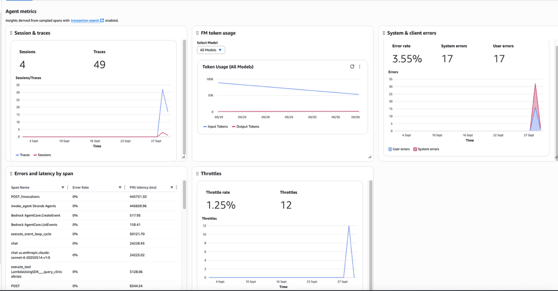 The built-in dashboards show performance bottlenecks and identify why certain interactions might fail, enabling continuous improvement and reducing the mean time to detect (MTTD) and mean time to repair (MTTR). For biomedical applications where failed analyses can delay critical research timelines, this rapid issue resolution capability makes sure that research momentum is maintained.
