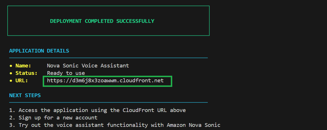 through deploying Amazon Nova Sonic in your AWS account and testing voice-native features. - Amazon Nova Sonic docs – Provides API reference, streaming examples, and best