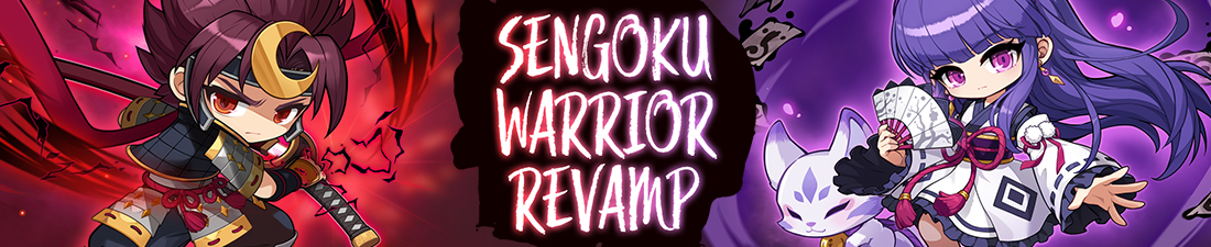 The Sengoku Warriors, Kanna and Hayato, have undergone many changes, including a new story, revamped skills, weapon changes, and much more! New and existing Kanna and Hayato characters can also gain Princess Sakuno's Support in a new event, gaining special rewards as they defeat enemies and progress through MapleStory!