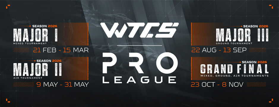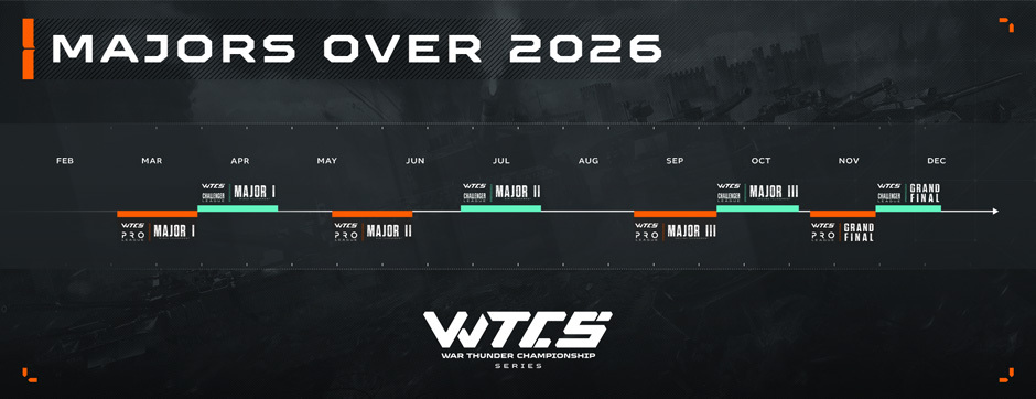 As the dust settles on an unforgettable 2025 season, we stand on the threshold of a brand new year for War Thunder Esports, with 2026 promising to be bigger, bolder, and more competitive than ever. This year, War Thunder Esports continues its evolution with refined formats, higher stakes, and expanded opportunities for players across the globe. From rising talents to seasoned veterans, 2026 is designed to reward skill, dedication, and strategic mastery at every level of play. Throughout the year, the competitive calendar will once again be shaped by a series of major events, each pushing teams to their limits and offering unforgettable moments for players and spectators alike. New challenges await, familiar rivalries return, and the path to glory has never been clearer or more demanding. In this announcement, we’ll take you through what’s new for 2026 and what to expect from the upcoming competitive season. New year. New battles. New champions.Welcome to the 2026 WTCS Season! War Thunder Esports Calendar 2026: An OverviewThe 2026 War Thunder Esports season is structured around a full-year competitive calendar, designed to provide consistent high-level competition while maintaining a clear progression from early-season majors to decisive grand finals. The year is divided into four quarters, each playing a distinct role in the competitive ecosystem, with parallel paths for professional and challenger-level teams. Seasonal StructureImportant Notice: Teams that qualify for and earn points in the Pro League are strictly prohibited from participating in the Challenger League. Likewise, teams that qualify for and earn points in the Challenger League are not allowed to participate in the Pro League. Playing on secondary accounts to participate in both leagues is also strictly prohibited.Any player or team that fails to comply with this regulation will be fully disqualified for the entire season.The competitive season revolves around two main circuits.WTCS Pro League, featuring the highest-ranked teams. Teams participating in the Pro League will have the opportunity to compete for cash prizes at each Major event. Pro League Major I: 4v4 Mixed Battle RB (with markers) / Bo5 / 5 000 EurosPro League Major II: 4v4 Air Battle RB / Bo7 / 5 000 EurosPro League Major III: 4v4 Tank Battle RB (with markers) / Bo5 / 5 000 EurosPro League Grand Final: 4v4 All mode 15 000 Euros WTCS Challenger League, offering emerging teams a pathway to the top level. Both leagues follow a similar structure but different lineups, ensuring competitive balance and clear opportunities for progression. Challenger League Major I: 4v4 Mixed Battle RB (with markers) / Bo5Challenger League Major II: 4v4 Air Battle RB / Bo7Challenger League Major III: 4v4 Tank Battle RB (with markers) / Bo5Challenger League Grand Final: 4v4 All mode You’ll notice differences in the lineups and formats offered between each league, with the Pro League primarily focused on top-tier vehicles, while the Challenger League is designed around lower-tier vehicles.Training sessions will be made available every week, from Wednesday to Sunday, on our tournament platform.Prizes and RewardsThe prizes will be announced ahead of each Major, as will the partners who will be supporting both of the leagues throughout the 2026 season!This is one of the most important differences between the two leagues.This year, the Professional League will feature a total cash prize pool of €30,000. The top eight Grand Final teams will also have the opportunity to co-create Team Packs.For rookie teams looking to compete in the Challenger League, more than 500,000 Golden Eagles will be awarded throughout the year, along with opportunities to win packs of your choice and rare vehicle coupons.Roster ConstructionThis year, to participate in either league, teams must have a minimum roster of 4 players and a maximum roster of 7 players for each Major event.One player change per roster, per Major, is allowed.The roster for the Grand Finals will be limited to a maximum of 8 players. Broadcast and PromotionThis year, you’ll be able to follow the entire WTCS season on our multilingual Twitch channels, including English, Russian, French, Polish, and German, as well as an English broadcast on our YouTube channel.In addition, all event replays will be available on our YouTube channel, along with highlight compilations featuring the best moments.You’ll also be able to follow all news and updates related to both leagues on our dedicated social media channels, including X, Instagram, and Discord.Most Valuable Player CriteriaThe MVP title is awarded based on several key criteria that reflect a player’s overall impact on the tournament. These criteria go beyond statistics, focusing on influence, decision-making, and consistency at the highest level of competition.Impactful actions measure how often a player directly affects the outcome of a match through clutch plays or decisive moments. Presence on the battlefield highl