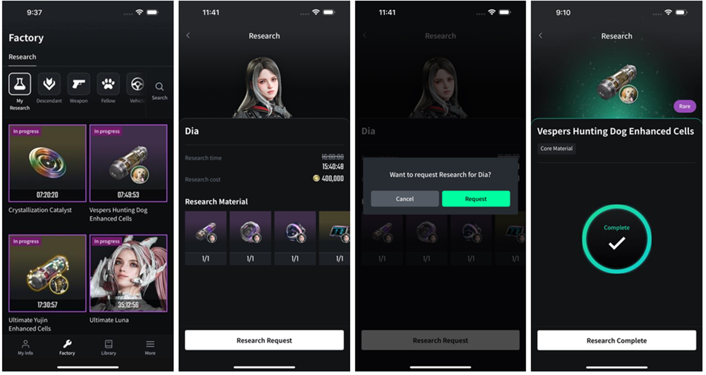 ※ If you complete research in-game and do not refresh the app, the app screen may show that research completion is available, but actual rewards may not be granted.