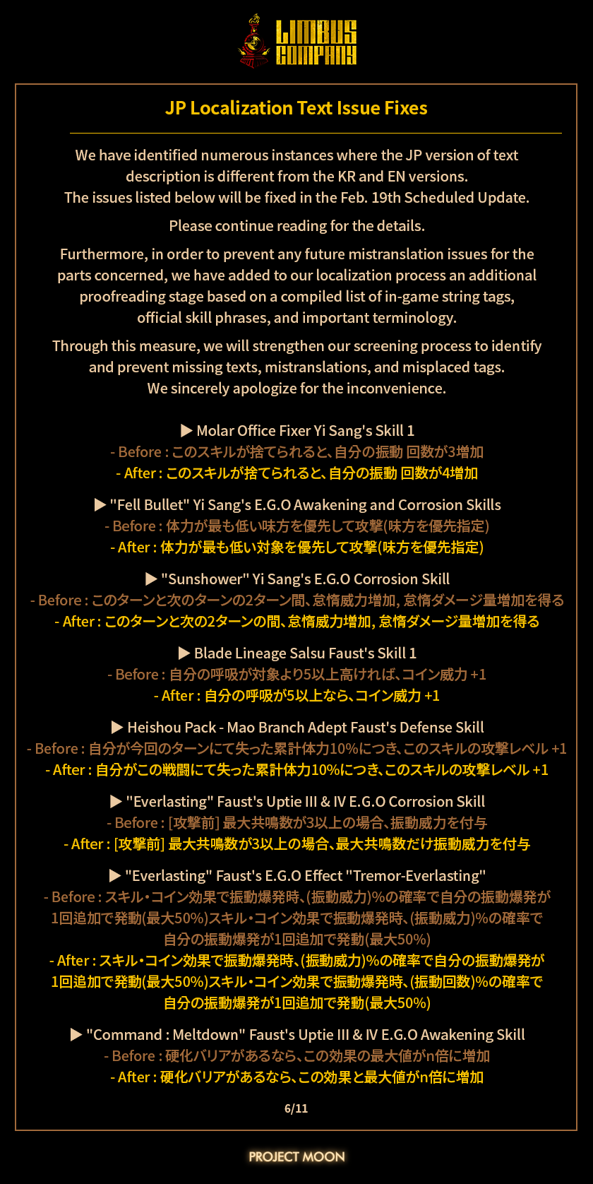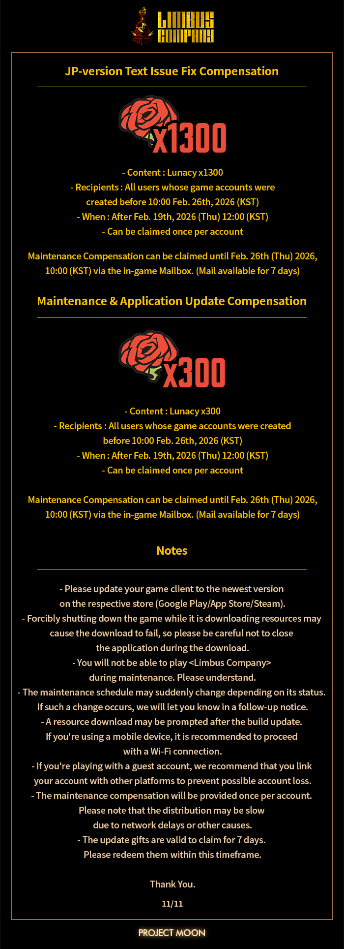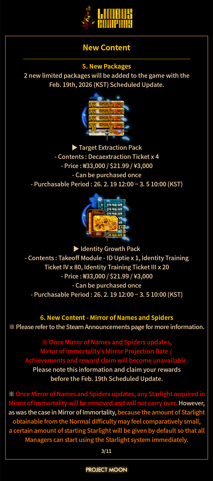 2026, Feb. 19th Scheduled Update Notice