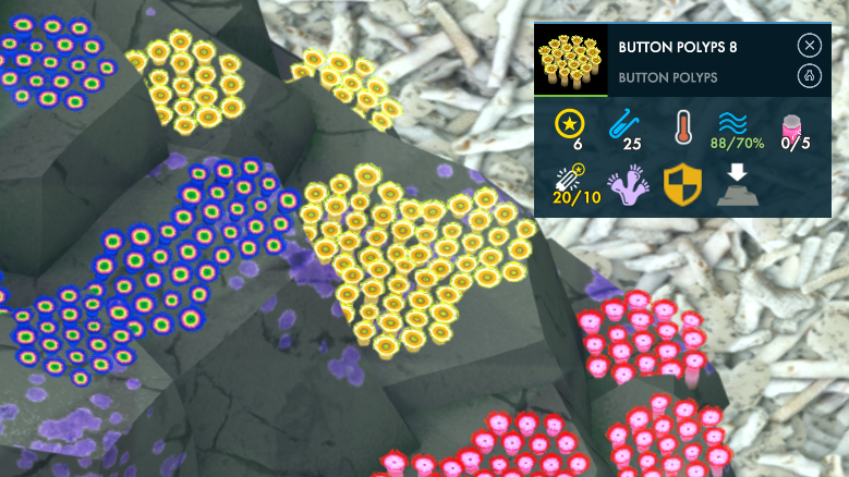 Button Polyps also make use of a brand new mechanic for this DLC: optional light requirements. They survive with a light level of 5, but will truly flourish with heavier lighting, netting you extra prestige.