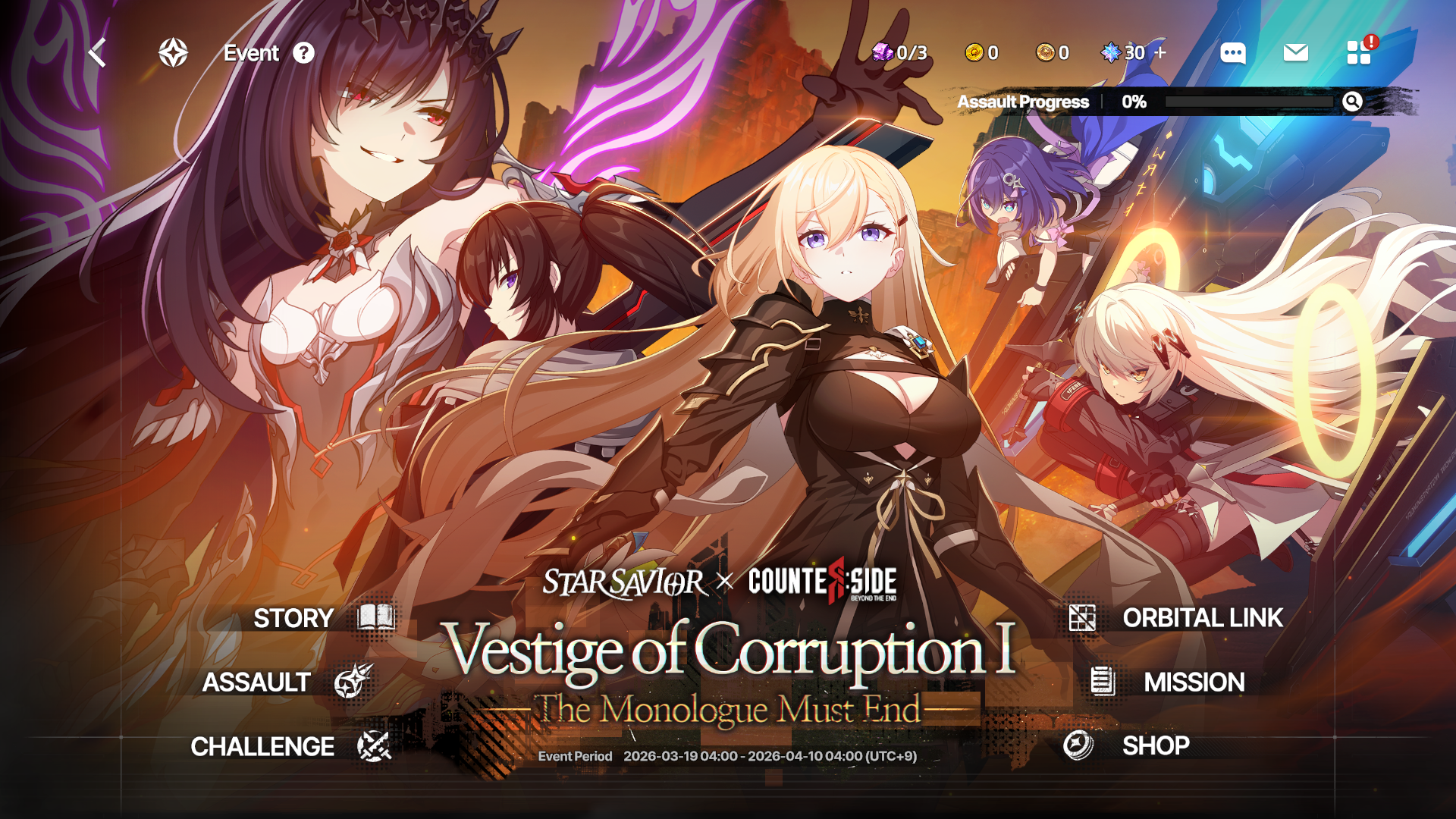 Guide your Star-kissed Saviors. StarSavior!Greetings, Captain! This is your Liaison Officer, GM Lisa.Below is the update announcement for March 26.▣ Maintenance Schedule: Mar. 26 01:00 - 06:00 (UTC) (5 hours)▣ Maintenance Impact: Game access will be unavailable during the maintenance.▣ Maintenance Compensation: 100 Stellagems + 5 Standard Savior Observation Tickets ※ The details in this patch note may be subject to change depending on the update status on the day of the update.Please check the game after the update for the most accurate information.1. Cosmo Gate Galaxy Season 1Cosmo Gate Galaxy Season 1 will begin.▶ Season Period: Mar. 26 01:00 - Apr. 1 19:00 (UTC)▶ Settlement Period: Apr. 1 19:00 - Apr. 8 19:00 (UTC) ※ Cosmo Gate cannot be played during the settlement period.In Galaxy Season 1, Hilde & Rosaria will appear as raid bosses.Challenge of the Stars will also be applied in Galaxy Season 1.※ Updated on 3/17 09:24 UTC2. EventA new event, Phase 2 of the 1st Vestige of Corruption, The Monologue Must End, will be unlocked under Main Lobby > Battle > Candle Square > Event.※ In this event, you can obtain various currencies by clearing Story, Assault, and Challenge stages.※ You can use the additional reward, Credits, in the dedicated shop to obtain items needed for growth.3. Cash Shop Product Sales- Some products will be available again in the Cash Shop.Check the details through the Shop menu on the left side of the Main Lobby in-game.4. Improvements and Changes▶ Some resources for Savior Hilde will be improved and updated like the following:Hilde’s Korean battle voice tone will be improved.Hilde’s face modeling and some facial expressions will be improved.▶ The difficulty of some Bingo missions will be reduced. The following missions will be adjusted:Before: Complete Journey 1 timeAfter: Claim NOA Support Fund 1 timeBefore: Clear any Event Assault stage 1 timeAfter: Clear Flash Point 1 time▶ The English level-up information text for Break Skills will be adjusted to improve legibility.▶ The English filter text in the Arcana inventory will be adjusted so that it no longer overlaps.▶ The English name and probability button for Guidestone will be adjusted so that they no longer overlap.▶ English nicknames in Strategy Battle will be adjusted so that they no longer extend outside the display area.▶ The English text in the timestamp in the Apocalypse Shop Daily Offer will be adjusted so that it no longer appears with an unintended line break.▶ The English reward text area in the Regional Dispatch will be adjusted so that it no longer overlaps.▶ The English rank text in the Gauntlet Season Info will be adjusted so that it no longer overlaps.▶ The English text alignment in the Operation Breakthrough Pass Vol.2 tab will be adjusted.▶ As the Guest Policy was added on March 19, the server account reset period will be changed back to 14 days.▶ The class-specific descriptions in Resonance Enhancement materials will be removed.▶ The information for the \[Rosaria] Savior that could previously be viewed in the Database will no longer be visible.▶ The information for the \[The End Wears the Face of a Girl.] Arcana that could previously be viewed in the Database will no longer be visible.▶ Experimental Multi-language Support AddedAn experimental multi-language support feature based on AI translation will be added.Some expressions may be awkward or inaccurate.Supported Languages: French / German / Spanish / Portuguese / Thai / Indonesian / Vietnamese5. Fixes▶ Fixed an issue where the red dot is reset and displayed again when selecting Orbital Link in a Story Event.▶ Fixed an issue where barrier indicators for allies and enemies are displayed in reverse on the HUD at the top of the Gauntlet screen.▶ Fixed an issue where hit voice lines continue to play when the magician inflicts sleep in Guild Defense.▶ Fixed an issue where the Star Link level is not applied to a Savior that first reached Lv. 200 on the device used for the initial installation.▶ Fixed an issue where a declined friend request remains visible and an error message appears when selecting Decline All.▶ Fixed an issue where the Claim button remains active after receiving 20 Friendship Points, and an error message appears when selecting it.▶ Fixed an issue where Orbital Link can be accessed before clearing Operation 1-5.▶ Fixed an issue where Flash Point’s Stage 4 is reflected in progress.▶ Fixed an issue where owned materials are intermittently displayed as 0 when selecting the Craft shortcut.\[Note]The schedule may change depending on the update status. If there are any changes, we will provide additional notice through this announcement.On mobile devices, reconnecting to the game may require data usage for the update download. We recommend using Wi-Fi.Thank you.