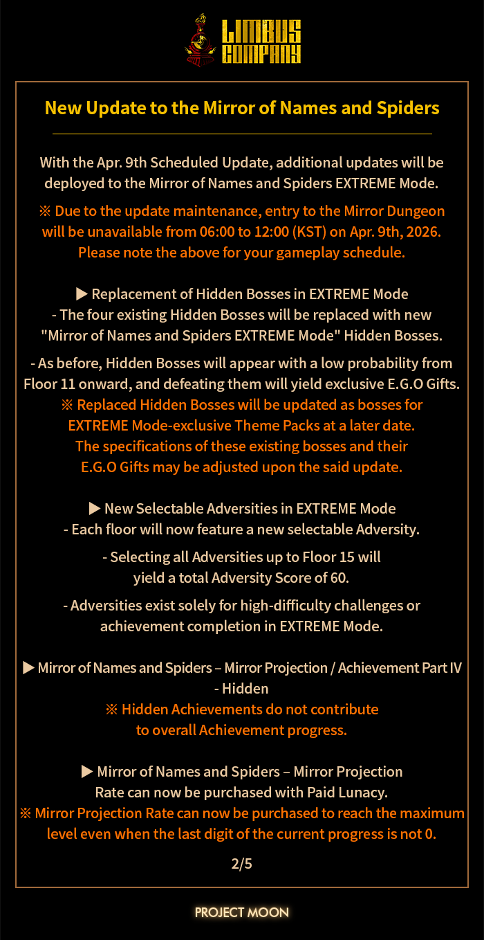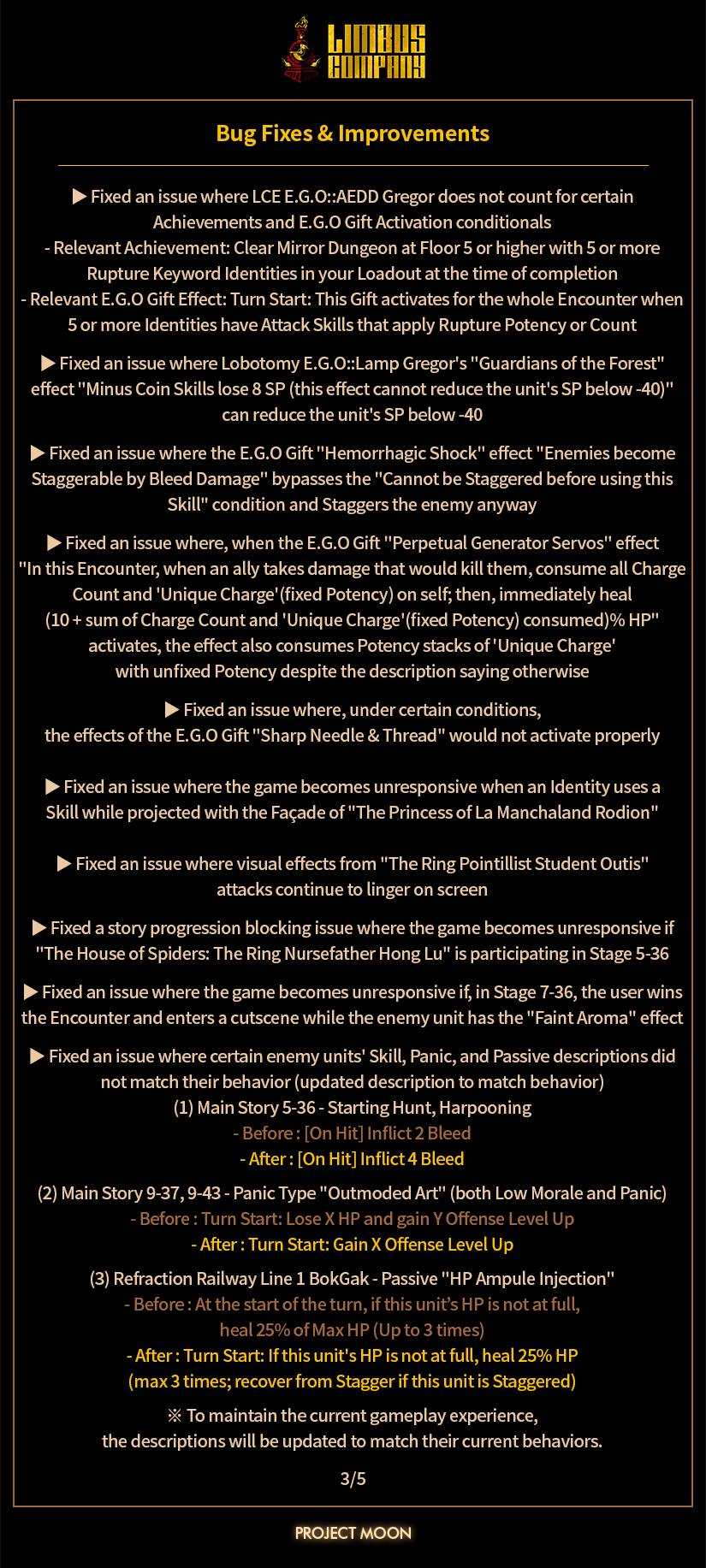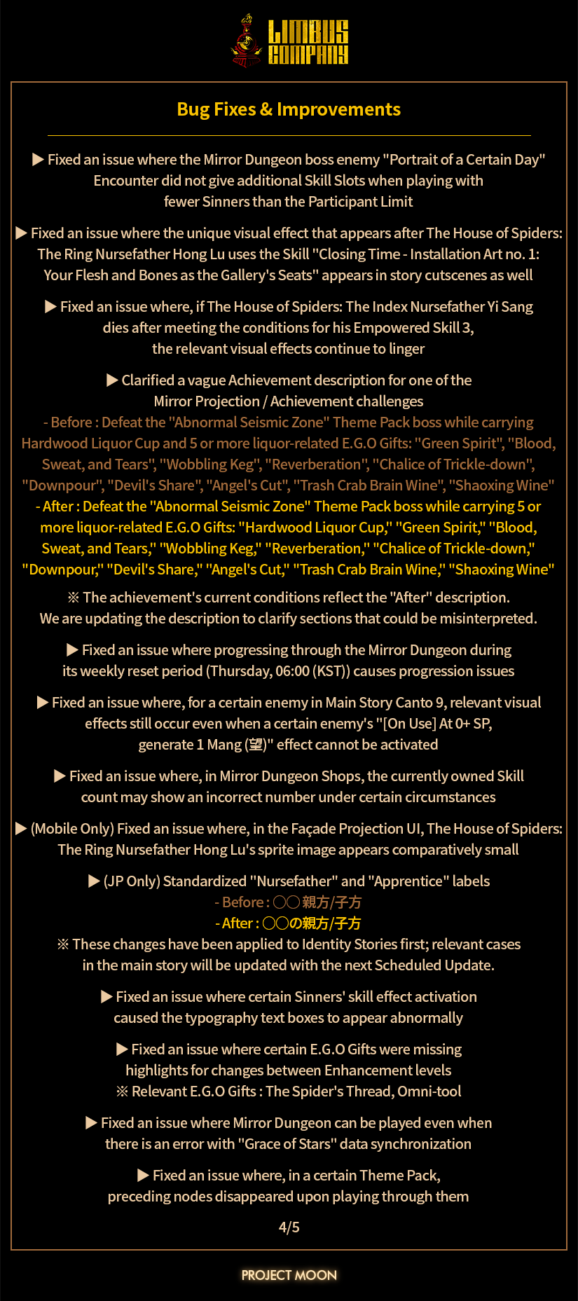 ※ Relevant Item : Clarified a vague Achievement description for one of the Mirror Projection / Achievement challenges