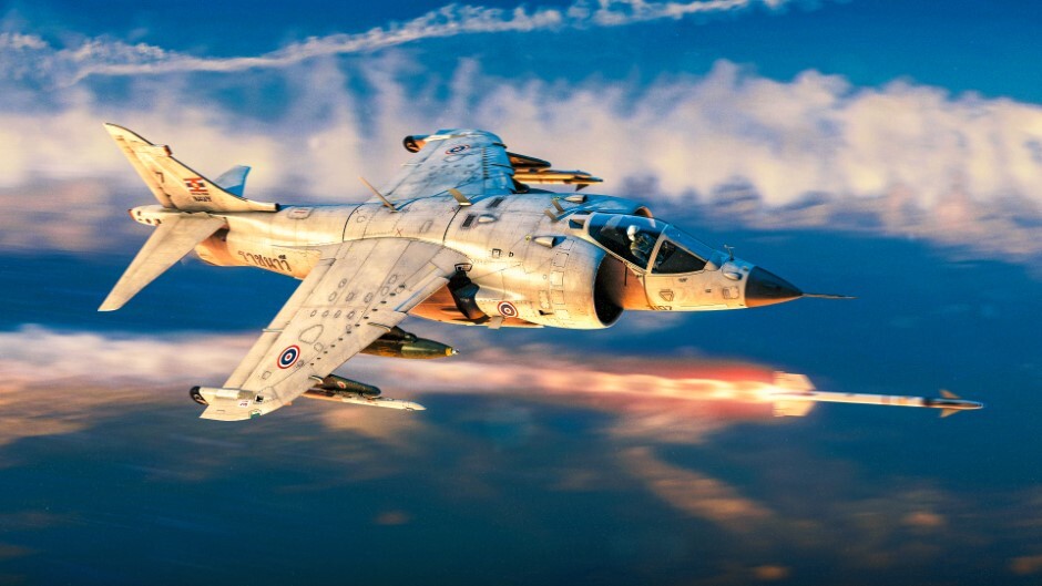 The AV-8 Harrier is a proven carrier-based strike aircraft with reliable 30 mm cannons, a large number of countermeasures, and a wide range of external weapons. These include guided and unguided rockets, incendiary tanks, and bombs up to 1,000 lb. The AV-8S, the export version of the aircraft, differs from the AV-8A in that it has an RWR and carries AIM-9P missiles instead of the AIM-9G.