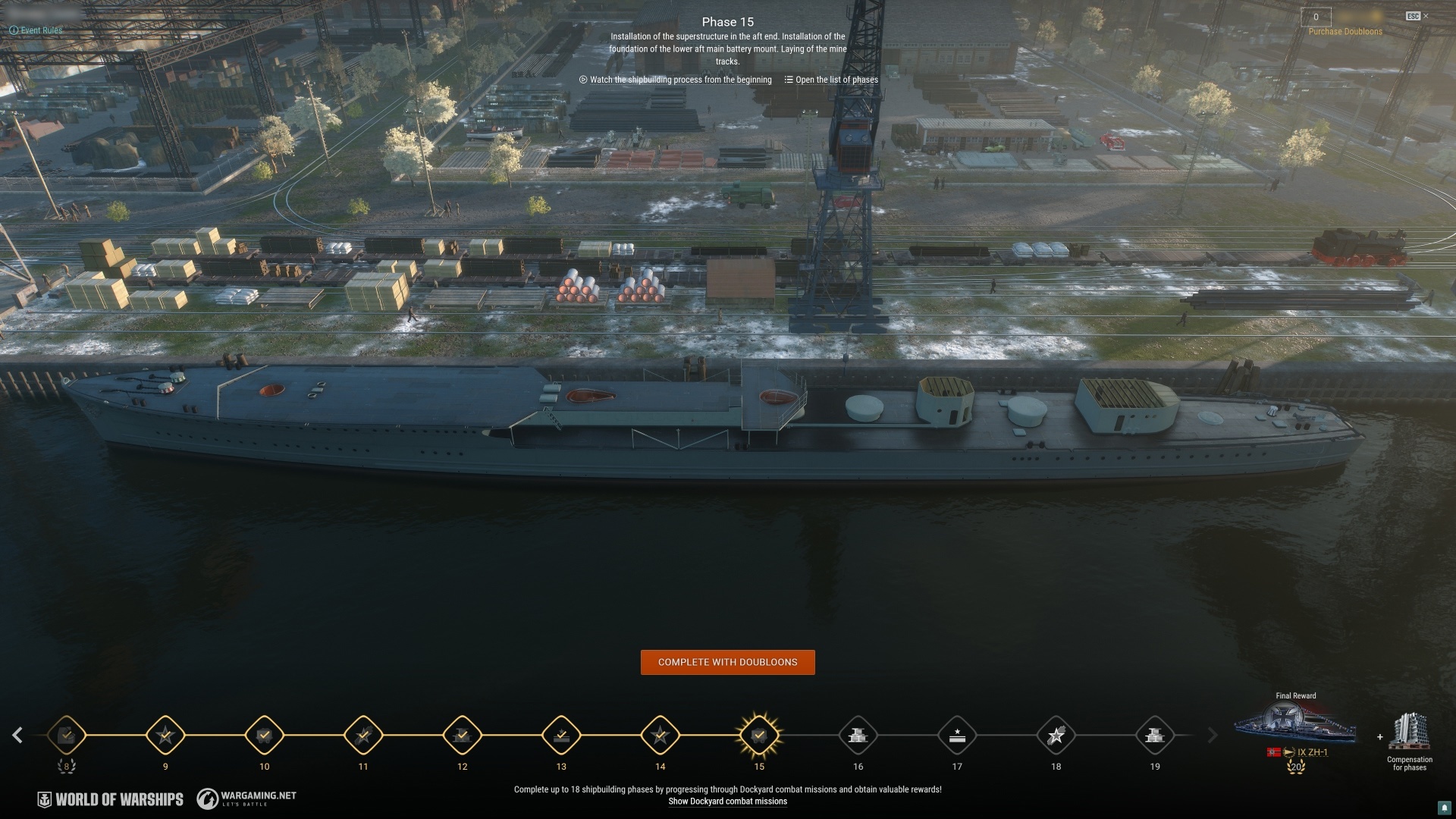 The New Update Is Out!Update 15.3 has been deployed, Captains! Sail into the game this weekend to discover a new Dockyard event that puts destroyer ZH-1 on the stocks, delivers a dual Event Pass, makes changes to aircraft carrier gameplay and the Mountain Range map's geography, and more! Read all about it in our dedicated patch notes article:Check Out the ChangelogFight Like a Cossack With Commander Ivan SirkoOur game's first Ukrainian-speaking Commander is now available to unlock for free! Simply claim a dedicated combat mission chain on our website to unlock the historical Cossack leader Ivan Sirko, the Resilient permanent camouflage, and a handy set of economic bonuses.Click here for more detailsConstruction of ZH-1 Has CommencedThe Germans have a new destroyer—but it's your task to build this ship if you want her in your fleet! The new Dockyard event has kicked off for ZH-1—a special ship rooted in Dutch shipbuilding origins that she displays with access to quite unusual armament for a German ship: HE Airstrike.To complete her, you'll need to advance through 20 shipbuilding phases—18 via combat missions and two for Doubloons. Click here for more detailsTake the 15.3 Survey!Enjoying the new features introduced by Update 15.3? Let us know what you think via the survey link below!Take Survey