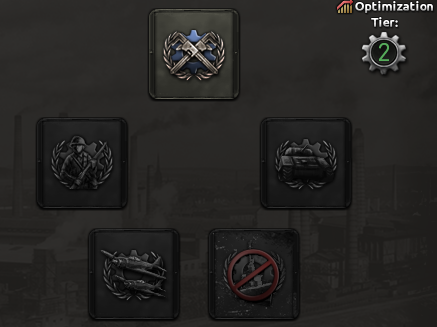 To do some focuses in the Industrial and Army Branches, you must have selected a certain Industrial Priority focus to be able to select the national focus. The overlays relate to the focus’s Industrial Priorities requirements, so you can see them at a glance without having to hover over each focus to glean the requirements.