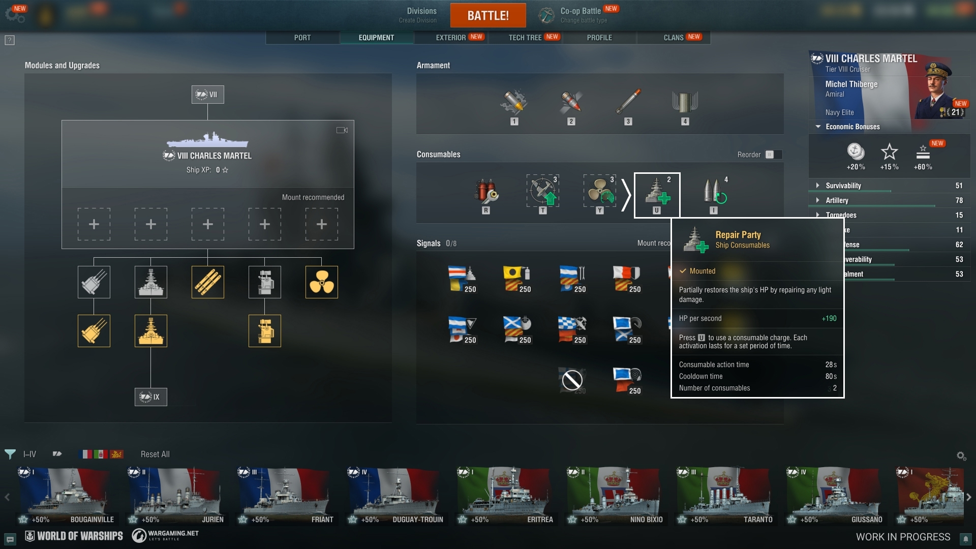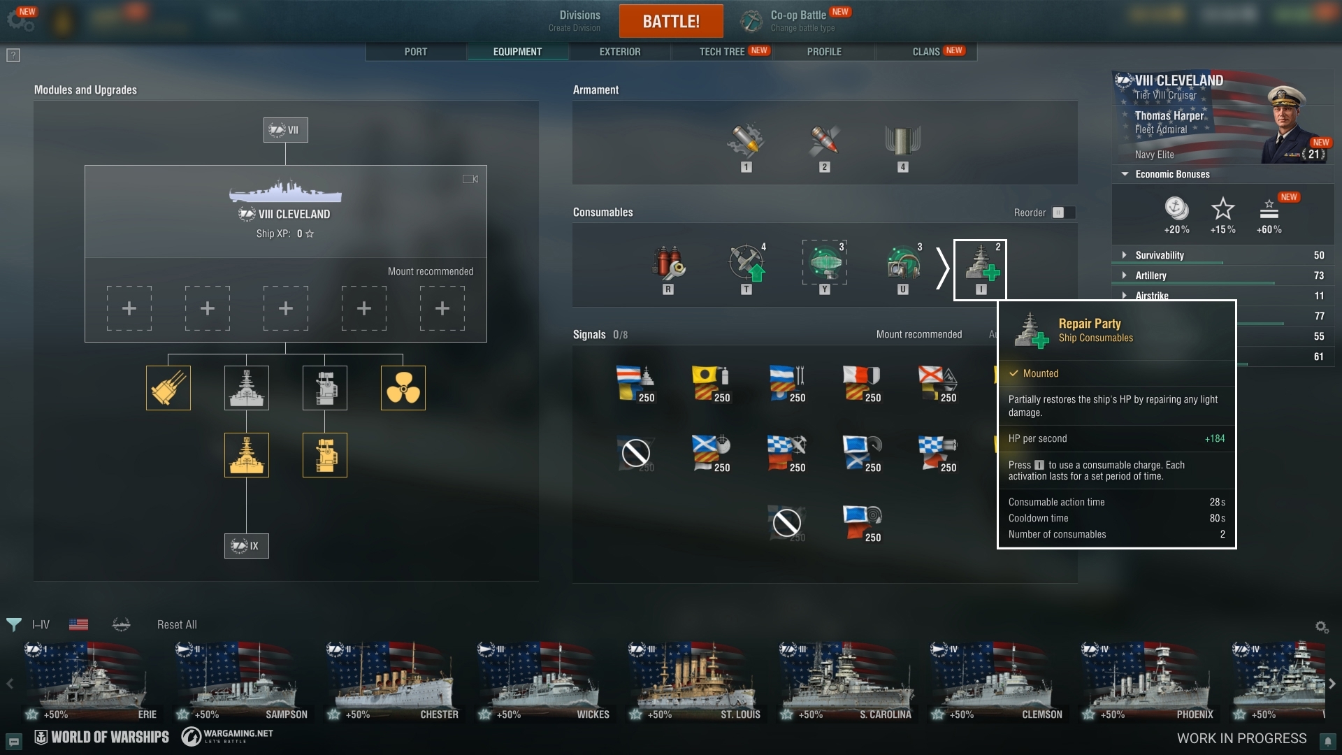 These subs stand out for their focus on gunnery—an unusual trait for submarines. Their gunfighting tactics will be aided by Exhaust Smoke Generator, as well as Repair Party from Tier VIII. - Survivability Update for Cruisers: Cruiser mains rejoice! With Update 15.4, Tier VI–VIII cruisers that lacked access to the Repair Party consumable will receive it with two charges, with just a handful of exceptions for select Premium ships.