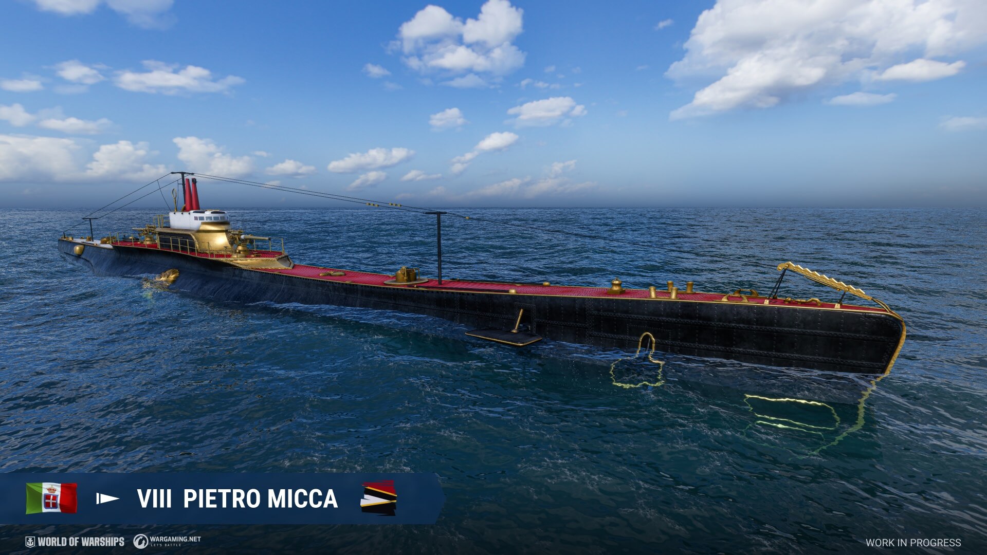Tokens can be exchanged for thematic rewards, including the new Hunt for Bismarck permanent camouflage, the Hunt Continues permanent camouflage for King George V, the Last Sortie enemy destruction effect, and other items. - Early Access to Italian Submarines: A new Tech Tree branch emerges from the depths! Three new Italian submarines will be available to obtain in Early Access—Tier VI Foca, Tier VIII Pietro Micca, and Tier X Calvi.