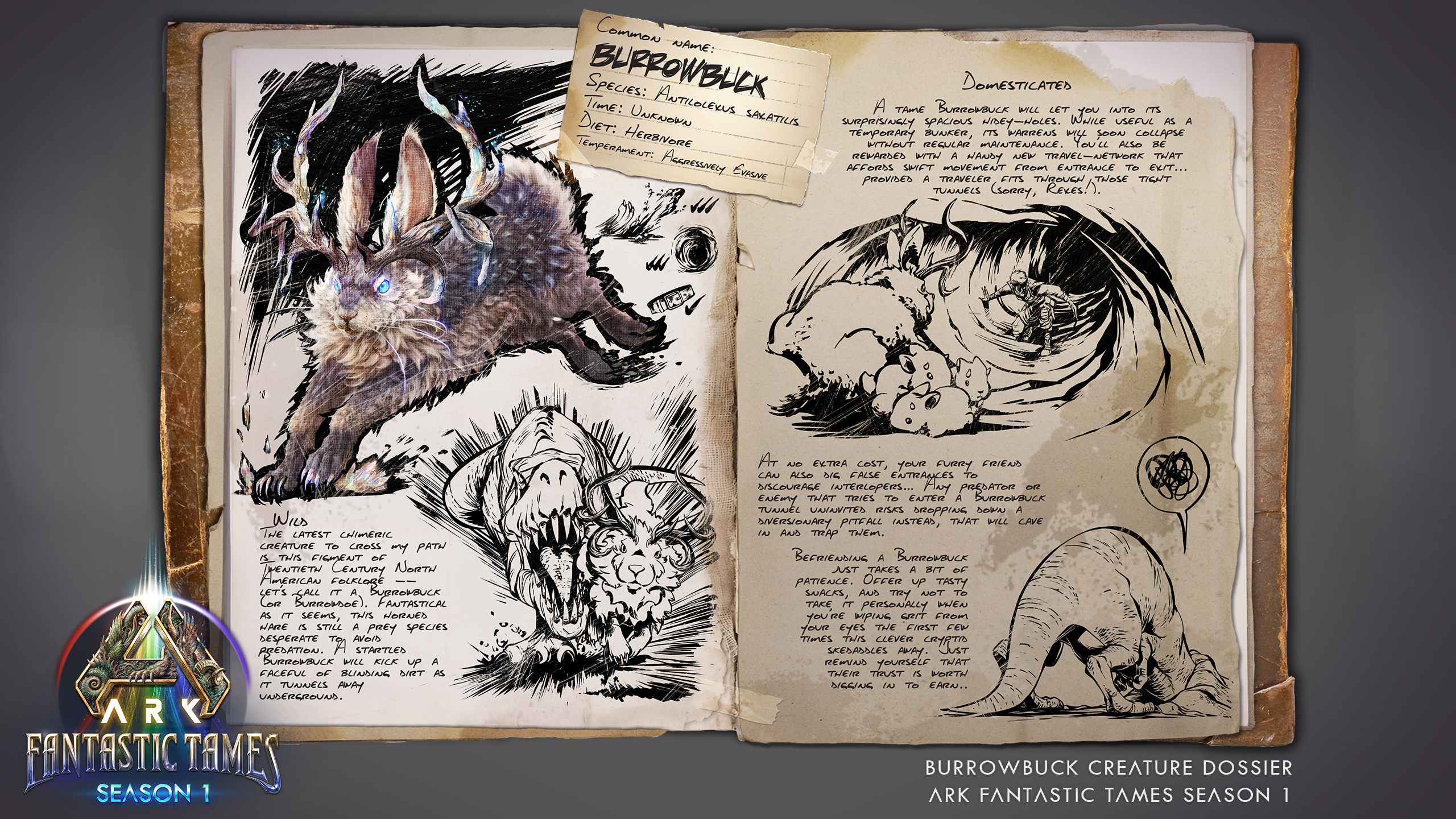 You’ve already caught a glimpse of the Burrowbuck… now it’s time to dig a little deeper.This peculiar horned hare may seem like nothing more than a fleeting shape in the dust, but those who’ve taken the time to observe it know better. There’s intent behind the way it vanishes, purpose behind every sudden tunnel and scattered trail.Beneath the surface lies a network, a safe spot, and if you take the time to earn its trust, something you can actually use to work the terrain in your favor.Download in full resolutionSpecies: Antilolexus saxatilisTime: UnknownDiet: HerbivoreTemperament: Aggressively EvasiveThe latest chimeric creature to cross my path is this figment of Twentieth Century North American folklore -- let’s call it a Burrowbuck (or Burrowdoe). Fantastical as it seems, this horned hare is still a prey species desperate to avoid predation. A startled Burrowbuck will kick up a faceful of blinding dirt as it tunnels away underground. A tame Burrowbuck will let you into its surprisingly spacious hidey-holes. While useful as a temporary bunker, its warrens will soon collapse without regular maintenance. You’ll also be rewarded with a handy new travel-network that affords swift movement from entrance to exit... provided a traveler fits through those tight tunnels (sorry, Rexes!). At no extra cost, your furry friend can also dig false entrances to discourage interlopers… Any predator or enemy that tries to enter a Burrowbuck tunnel uninvited risks dropping down a diversionary pitfall instead, that will cave in and trap them.Befriending a Burrowbuck just takes a bit of patience. Offer up tasty snacks, and try not to take it personally when you’re wiping grit from your eyes the first few times this clever cryptid skedaddles away. Just remind yourself that their trust is worth digging in to earn.The Burrowbuck is just one part of the upcoming [color=#66ffff]Fantastic Tames Season 1 pack ($9.99)[/color], with two more creatures to be revealed when the pack lands this Summer!MODSPOLIGHTLINKDownload & play new custom content created by players, including new maps, creatures, items, and game modes, through a dedicated new Mod-browser directly within the game. Enjoy an endless stream of new ARK content as the creativity and talent of the community is fully unleashed for the first time across gaming platforms and stay tuned as we spotlight more Cross-Platform Mods each week!This video features: Nekatus and Creep’s Fantasy Skins by Nekatus_Modding, Creep Spring Glider Wings by Sandi_00 Slates Medieval Helmets by TheCleanSlate Feras Creature Reforged: Wild Seas by Fera_Spielt ARKOLOGY: OE - Hapipalus (Content update!) by Dragonheart ARKOLOGY: OE - Sanguivern (Content update!) by DragonheartWe’ve been taking a targeted pass on cave entrances across Lost Colony, focused on improving their viability for PvP.A common piece of player feedback has been that many of these locations didn’t feel worth investing in. With this update, we’re reducing the size of several choke points to create more reliable, defensible positions and open up better base-building opportunities for PvP.As part of these changes, several cave entrances will be adjusted. We’ll list out the affected locations and coordinates below so you can check your spots ahead of time.[color=#3498db]Please note: any structures built directly within these choke points on PvP servers will be destroyed when the update goes live.[/color] If you have anything placed in these areas, we strongly recommend moving it in advance. These changes will impact Official PvP or any Unofficial server with cave building enabledPlayers on Official PvE servers will still see the updated entrances, but existing builds will not be impacted.These changes are currently planned to go live with a major version update on [color=#3498db]April 27th[/color].[color=#3498db]Download in full resolution[/color][color=#ff99ff]Eggcellent Adventure[/color] has been [color=#ff99ff]extended to April 21st[/color]! You now have more time to follow the trails of wild Bunny Dodos and Bunny Oviraptors and collect Bunny Eggs scattered across the ARK. These festive finds can be painted for fun or used to craft special holiday-themed cosmetics, including seasonal costumes and chibis.Check out [color=#ff99ff]this post for all the details[/color]!The Official Network will be receiving bonus rates! It will be active until [color=#3498db]Tuesday, April 21[/color]. [color=#3498db]PVP/PVE:[/color] 2x Harvesting, Taming, and Experience, and Breeding [color=#3498db]Small Tribes: [/color]4.5x Harvesting, Taming, and Experience + 4x Breeding [color=#3498db]ARKpocalypse:[/color] 5x Harvesting, Taming and Experience, and BreedingFan Art Gallery | Screenshot Gallery | Artist Feedback Form[color=#3498db]Creator[/color]: CrabbytronHere is a complete guide to taming the Acrocanthosaurus, from learning its fake roar to conquering the beast on foot!YOUTUBE URL[color=#3498db]Creator[/color]: Phlinger PhooPhlinger rates the viabili