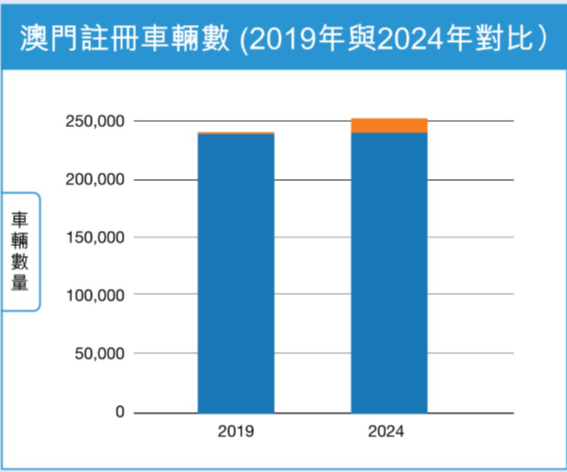 雖然增幅不算劇烈,但這反映出居民對私人機動車輛的依賴始終未變。2019年共有本地居民約679,600人,平均每100名居民擁有約35輛機動車輛;至2024年(人口688,300人),這一比率已上升至約37輛。
